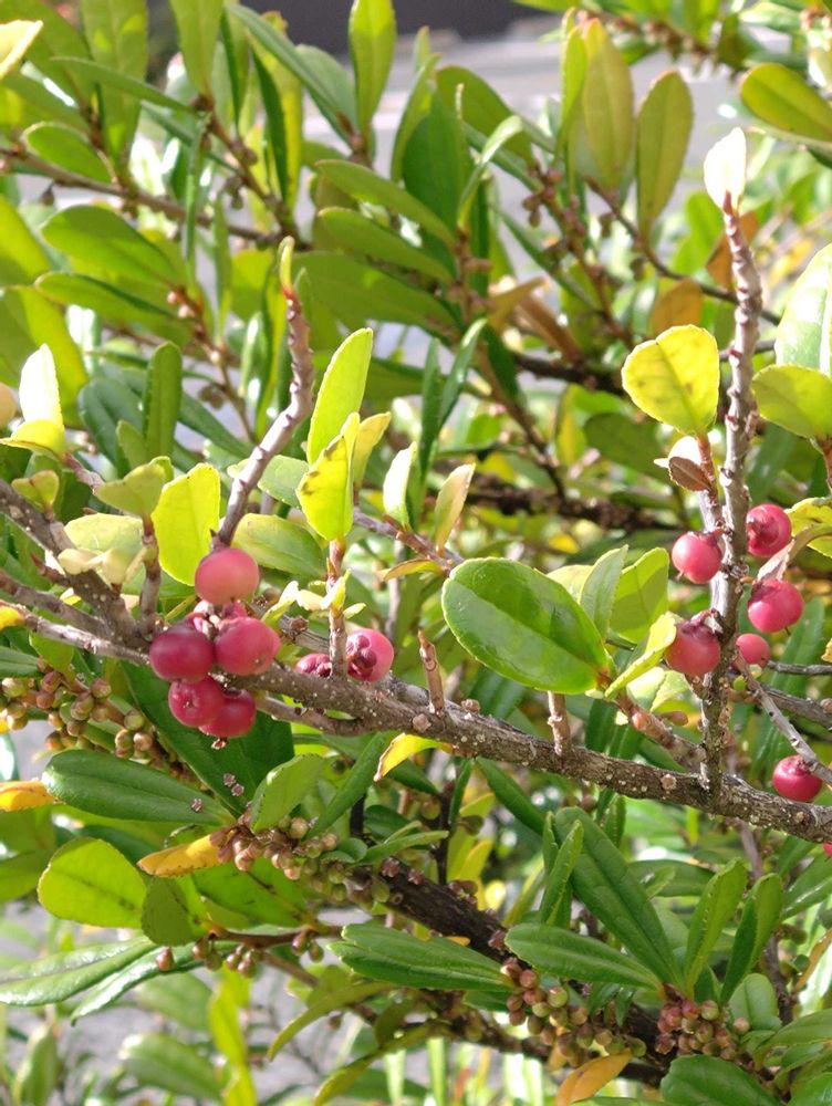 ハマヒサカキの実が 可愛いらしいですね〜😍 こんな赤っぽい色もあるのね❣️