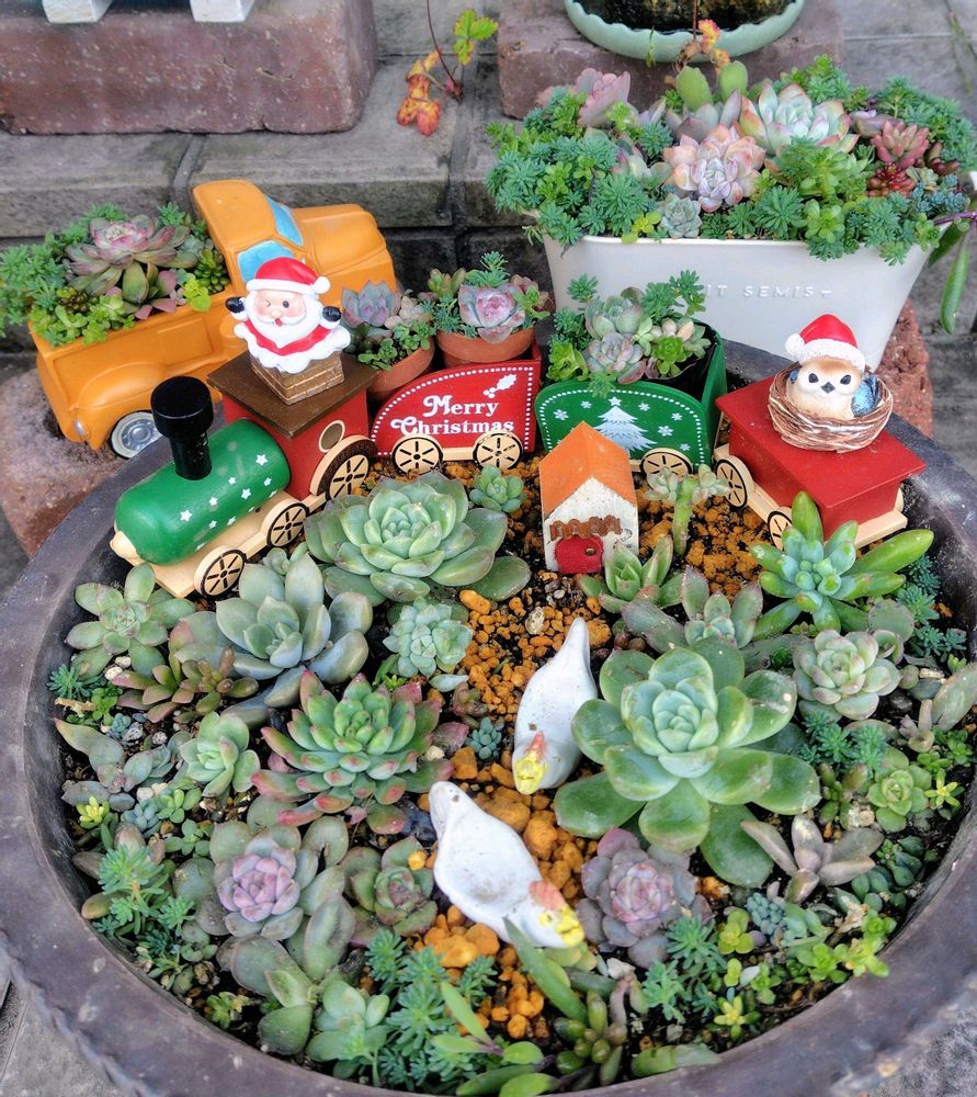 ③大きくなった株たちを大鉢にまとめて、🎄🎅箱庭寄せに初挑戦中。