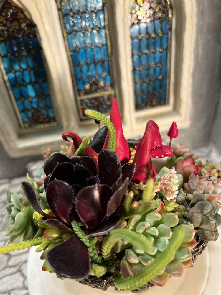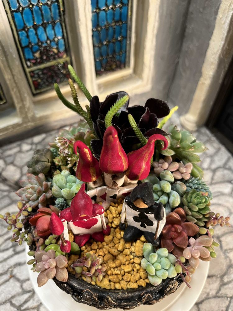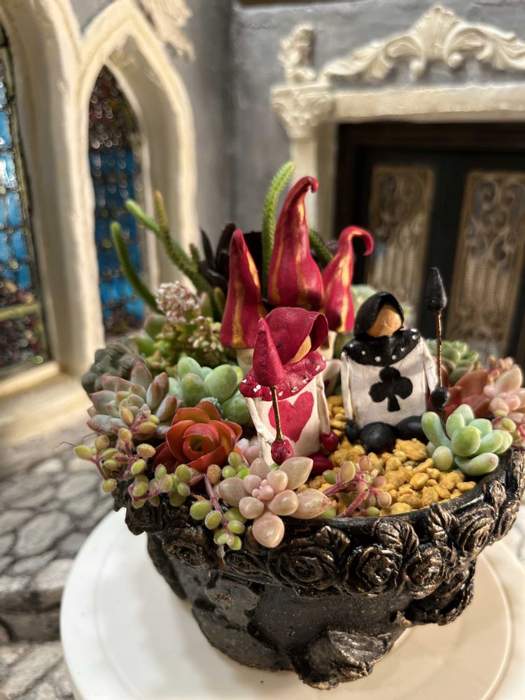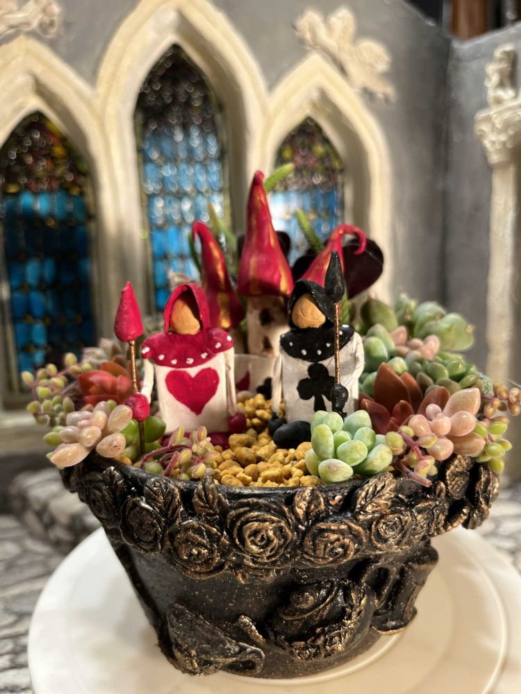 不思議の国のアリス鉢に箱庭寄せ植え💕