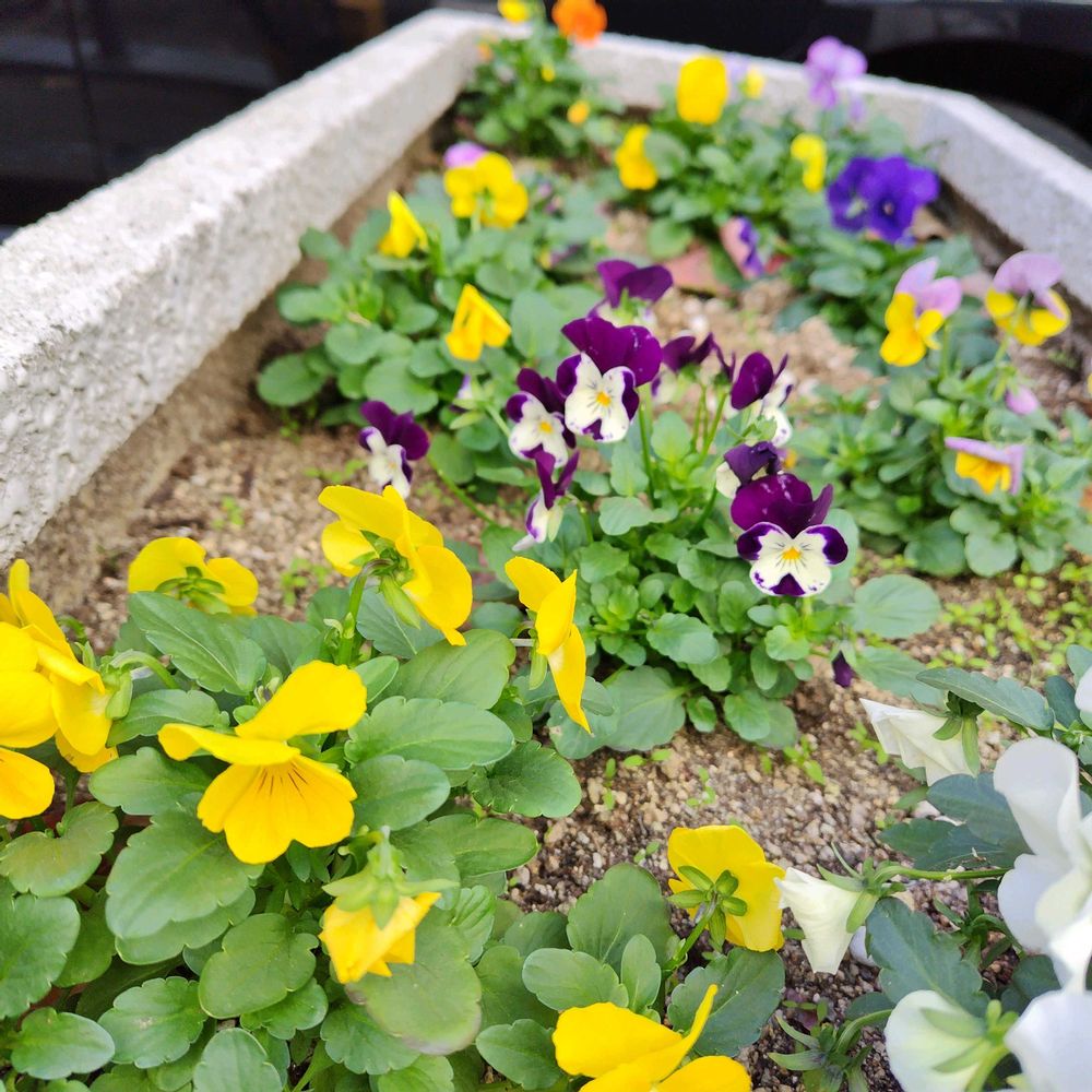 まだ初々しいビオラさんたちに…( ´ ▽ ` )ノ💛💙🩵💜💛💙🩵💜🥀🌱🤭🤗💞