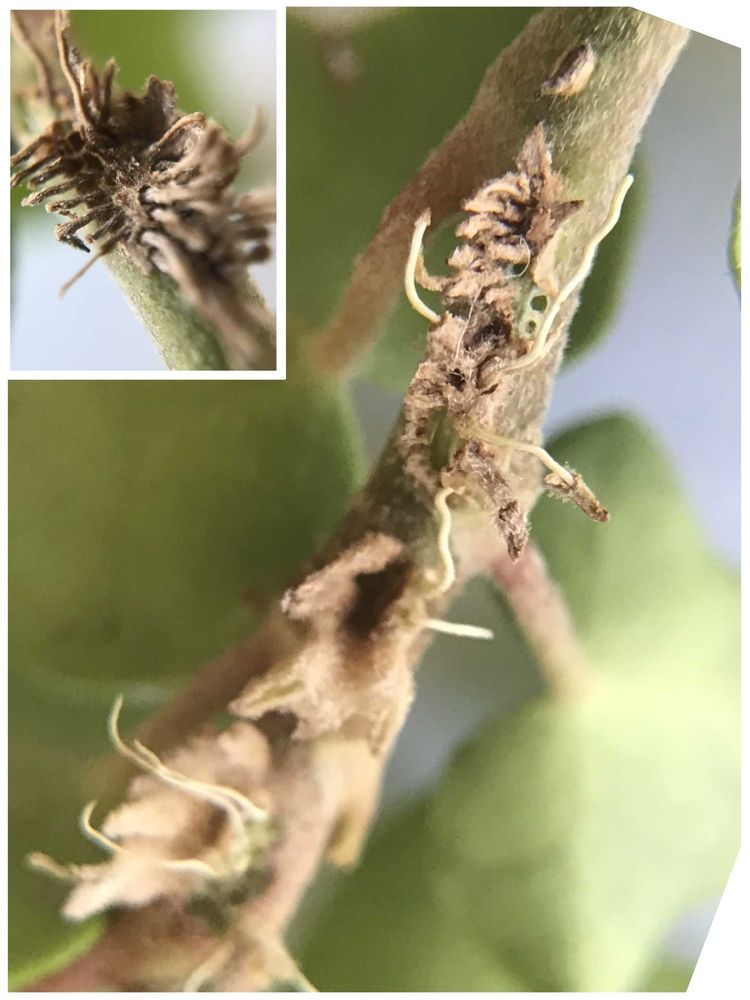 キヅタの気根は少しグロテスク 茎から出て他の木や壁などに付着し、つるを支える為の根です
