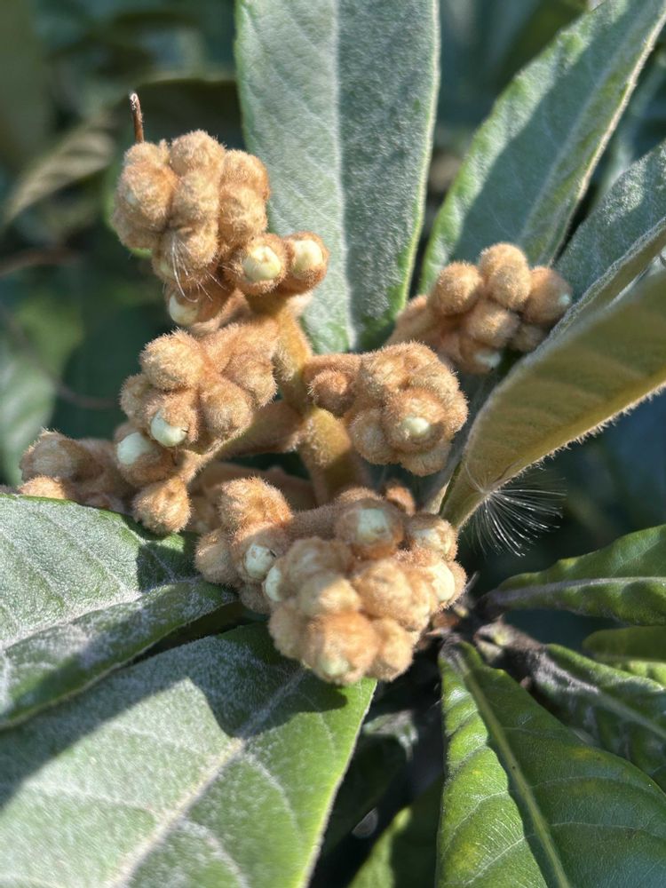 のんたんさんのビワの花,びわの蕾,ビワの若葉の投稿画像