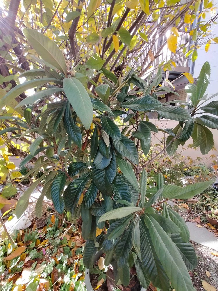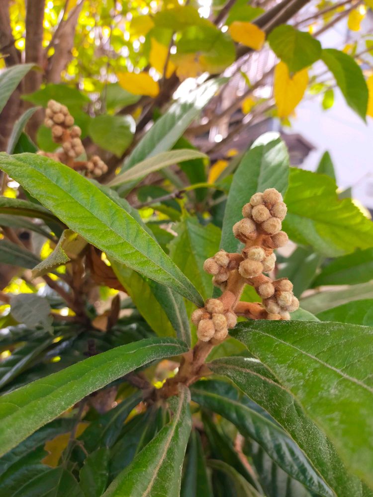 ビワの花房に100個異常の花蕾がつくので(我が家は少ない)全体の1/2〜1/3まで減らす摘房という作業があるそうで摘果に先んじて摘蕾作業をするんですって💛
