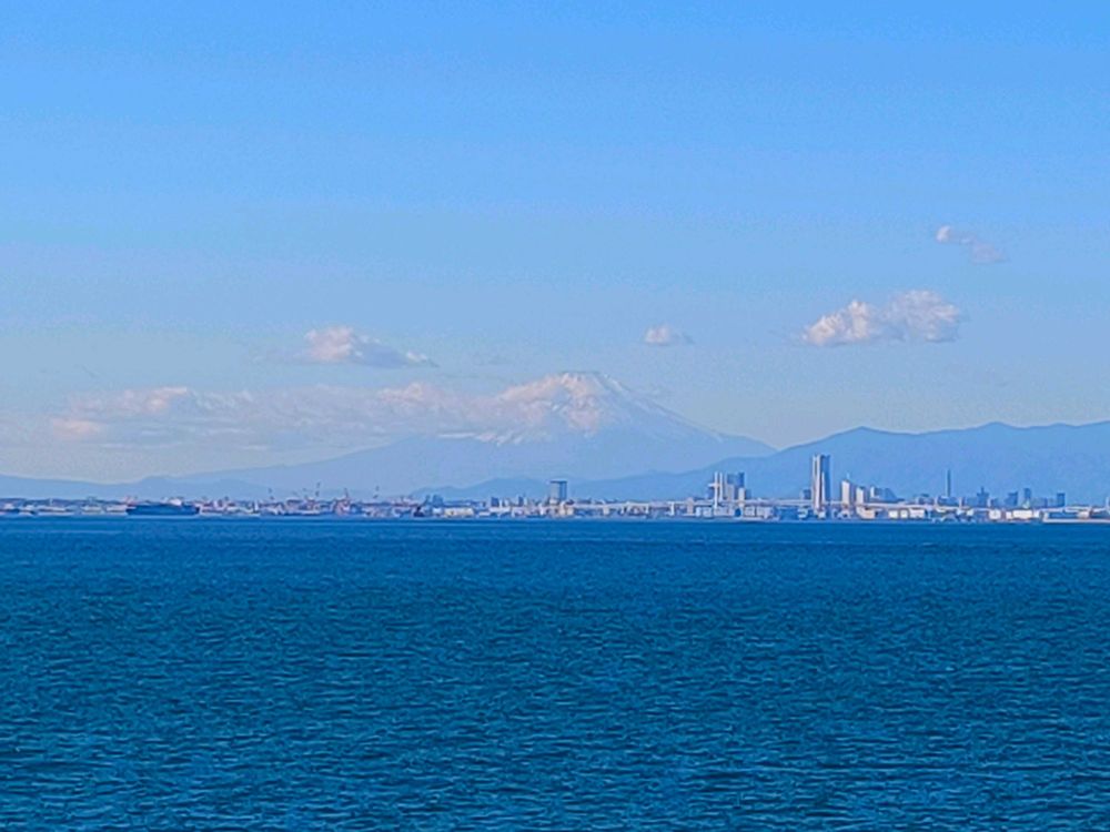 海も青、空も青、横浜方面を眺めると遠くに少し雲に隠れた富士山🗻が(5枚目)