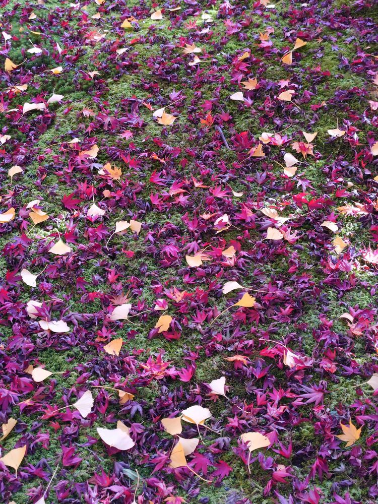 赤い❤️紅葉に、赤紫💜の紅葉、黄色い💛イチョウ、緑💚の苔😊💕