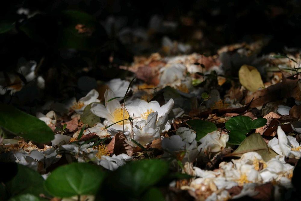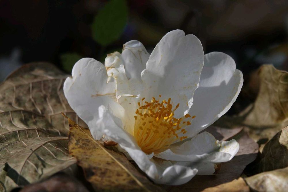 白いタイワンツバキ 咲いた姿も散る姿も美しいですね😍