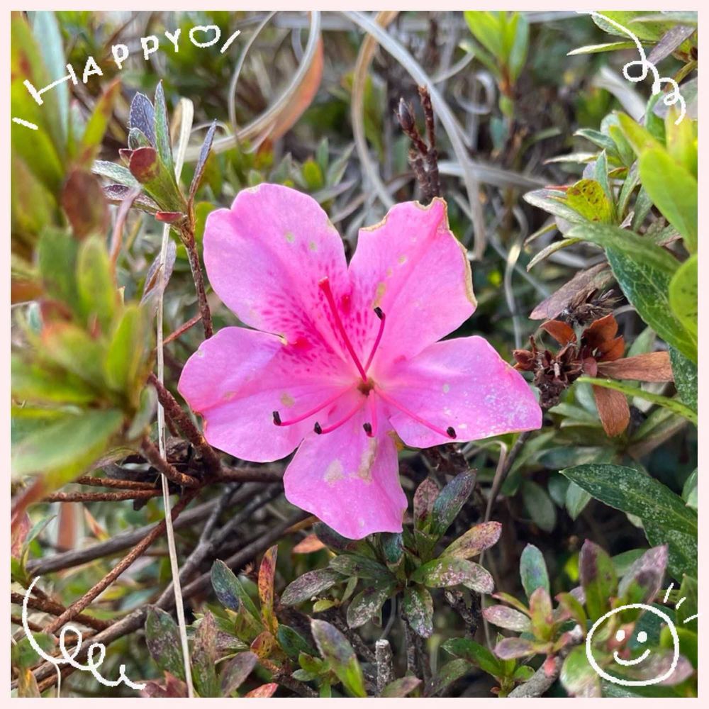 職場にて〜今頃ツツジでしょうか〜ポツンと咲いてました😍♬