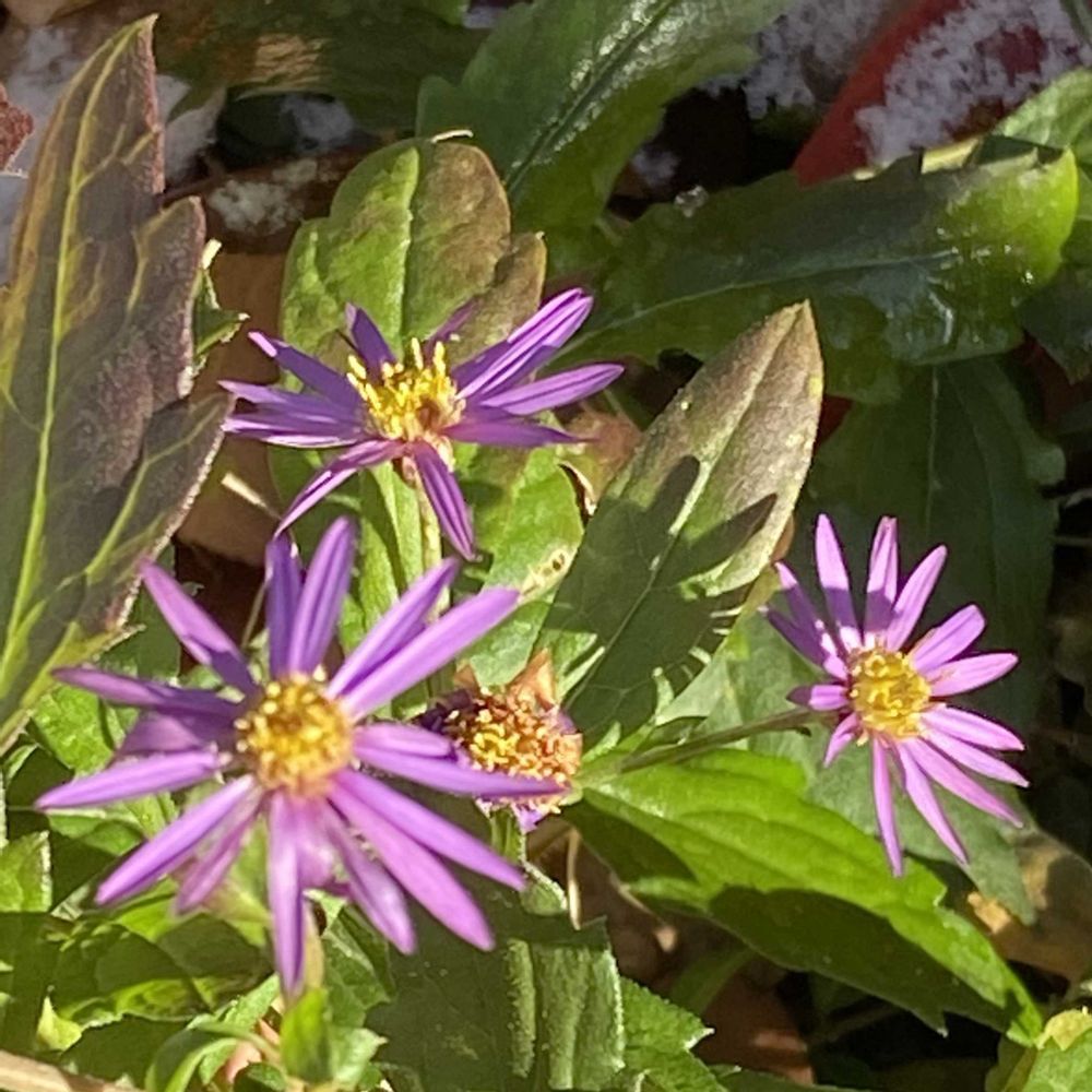 雪の残る中鮮やか花色でひっそり咲いていました💜⸜ ( ၴႅၴ⸝