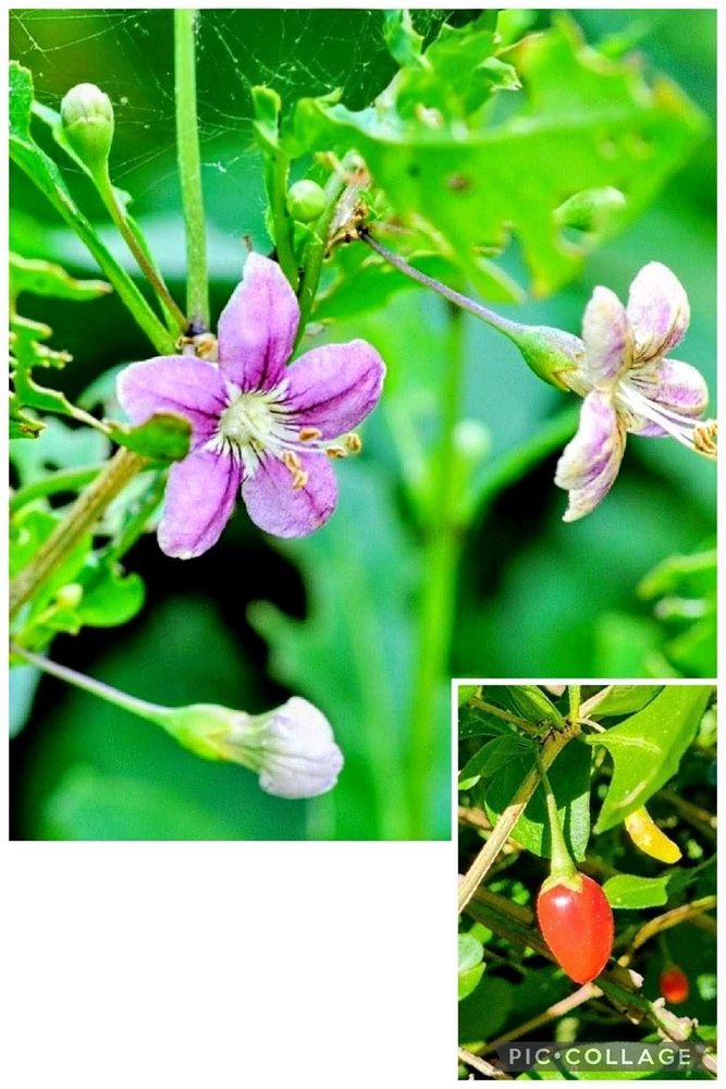 花びらが紫、実が丸くない⋯ナスに似てるみたいな⋯ナス科だそうです🤗
