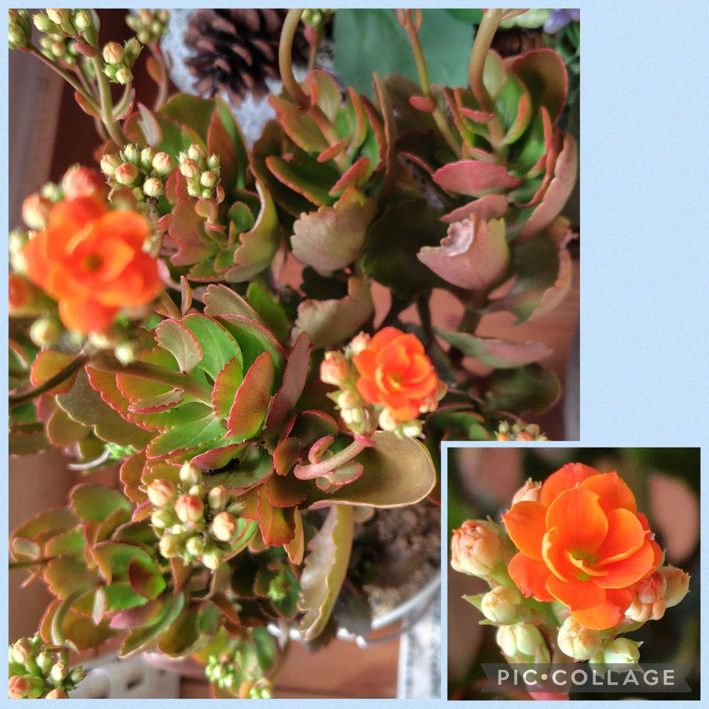 カランコエさん、明るい色がいいですね♡葉っぱの縁が赤いのも可愛いです🌿