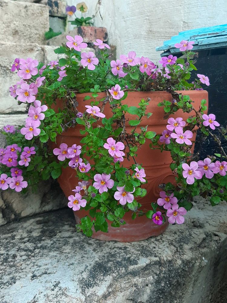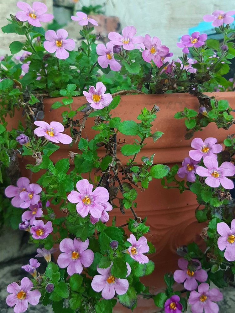 バコパ可愛くて綺麗ですよね!私の大好きなお花です。でも、毎年駄目にしてしまいます。八重咲きのバコパを駄目にした時は、ショック😨でした。私も今日投稿しょうと思います。これも、駄目になりそうな気配