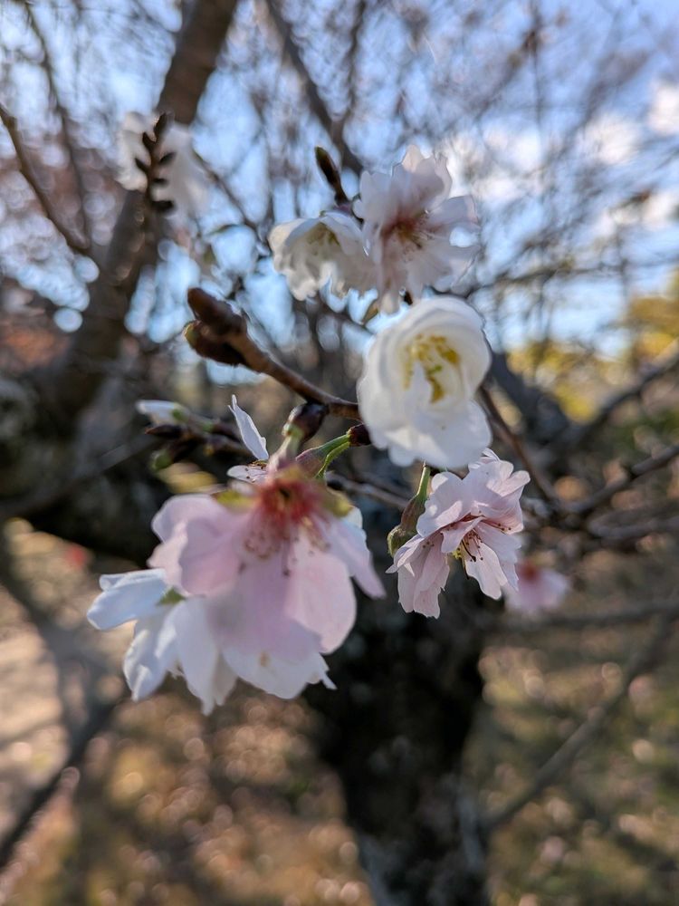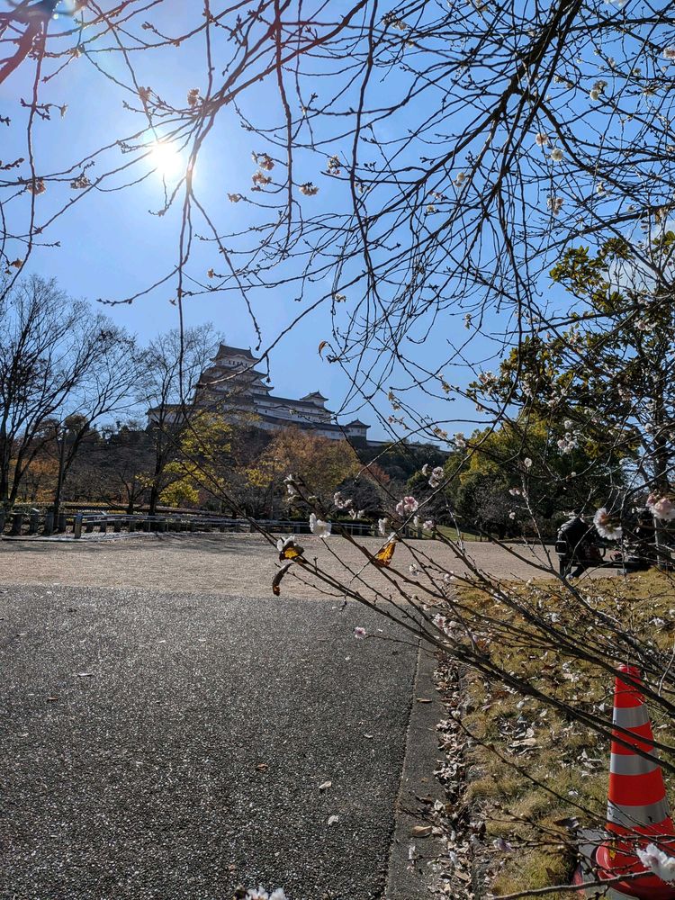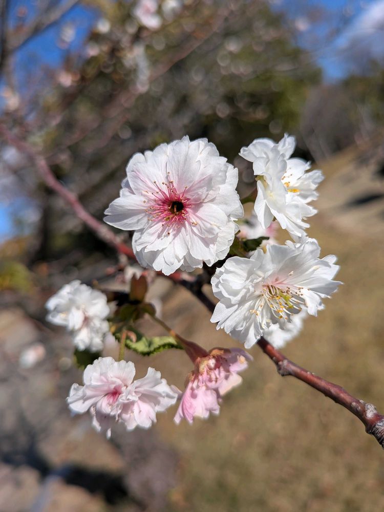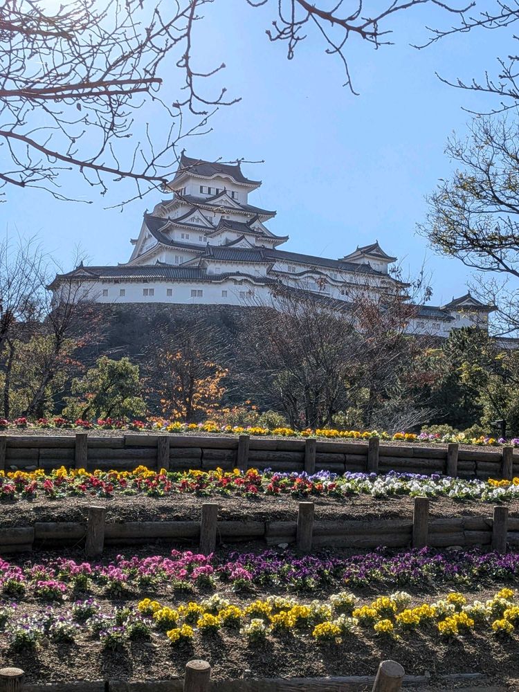 おはようございます。姫路城シロトピア記念公園の十月桜🌸と、北側からの姫路城と十月桜 パンジーです🏯🌸