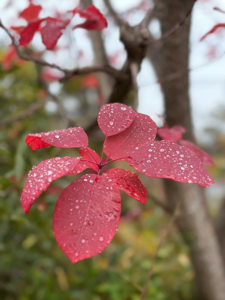 雨の中☔️スモークツリー グレイスの葉も未だまだ元気‼️綺麗です♥️♥️♥️