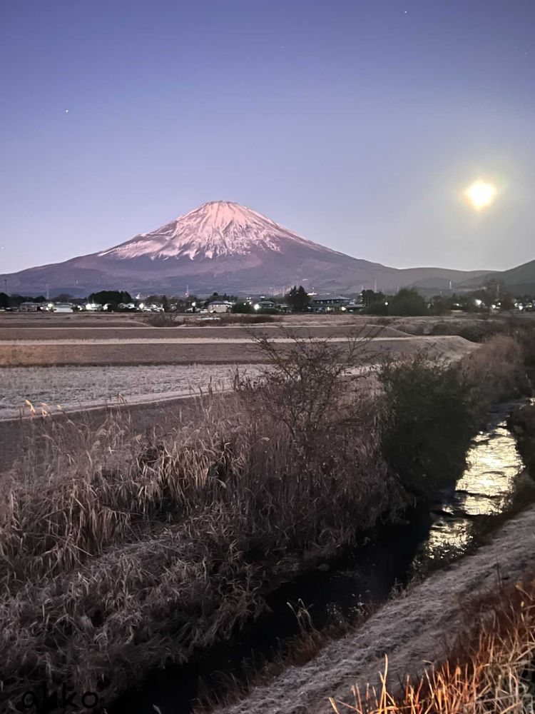 満月に富士山。贅沢ですね〜。素晴らしい。