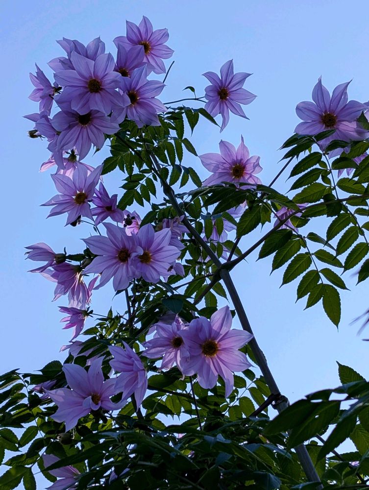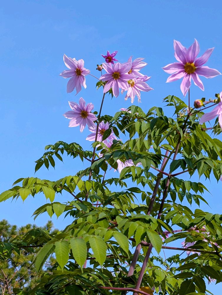 公園の皇帝ダリアは青空のもと一斉に満開🩷