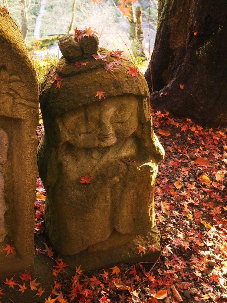 なかでも、童の石像にモミジの葉が乗っているのが可愛らしかったです🍁🥰