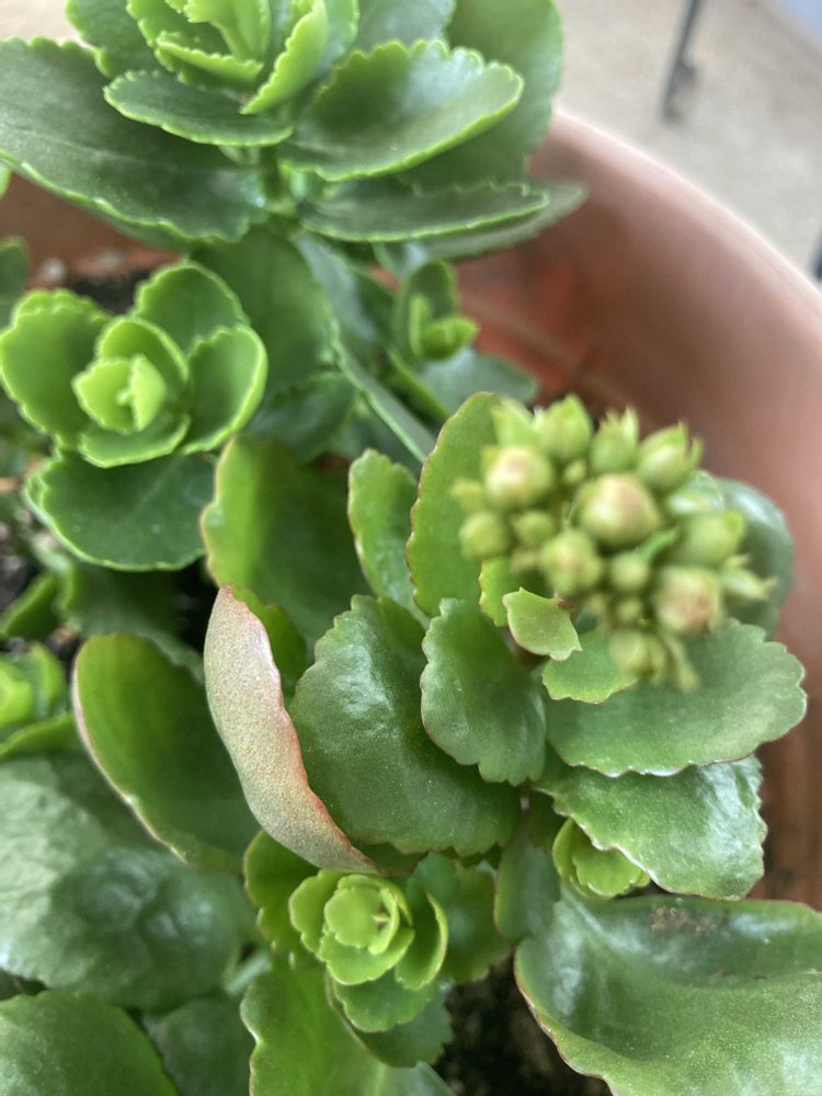 ②今春迎えた小さな花苗のカランコエ、白、ピンクの2種が