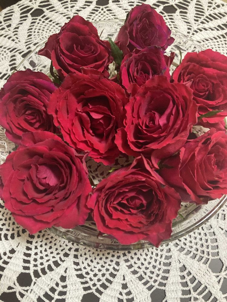⑤白いインテリアに真っ赤な薔薇の花手水🌹