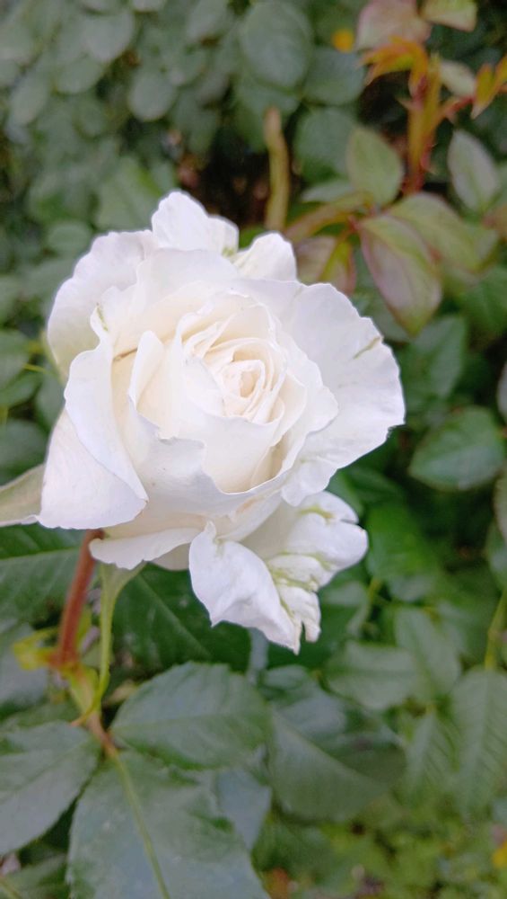 アンナプルナ🌹とても白くて美しさが濃いグリーンの葉に際立ちますね✨咲きかけも素敵です❣️