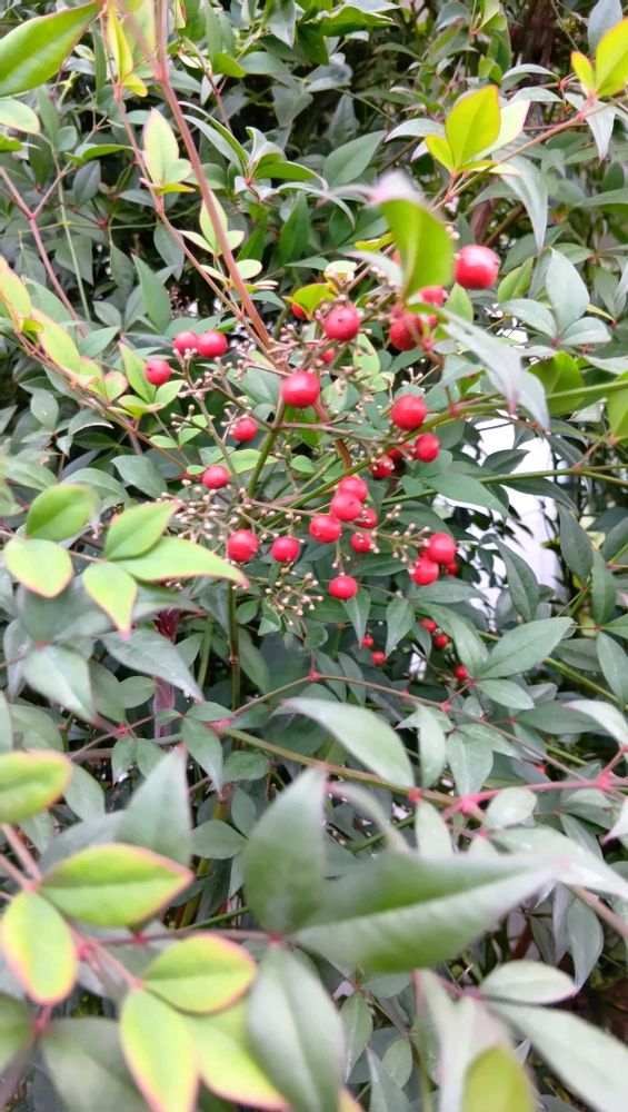 こちらも元気いっぱいの南天❣️紅白の南天おめでたいですね〜🔴⚪️😆
