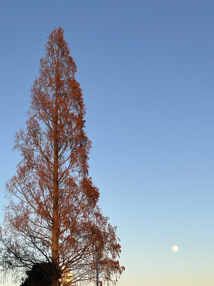 1️⃣メタセコイアと昼の月🧡🤎🌕
