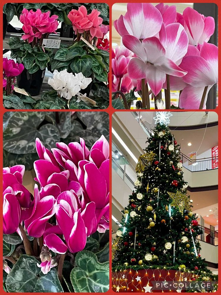 センターコートではクリスマスツリー🎄が飾り付けられ脇でシクラメンの特売もしていて華やかでした|ω・` )チラット🤳