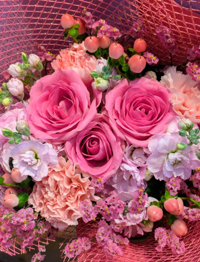 マカダミアナッツさんの花束,ピンクの花,ばら バラ 薔薇の投稿画像