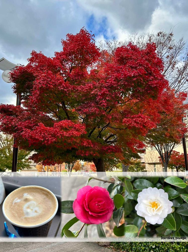 カプチーノ☕と紅葉、ホッコリ🩷いいひとときだね😉👍