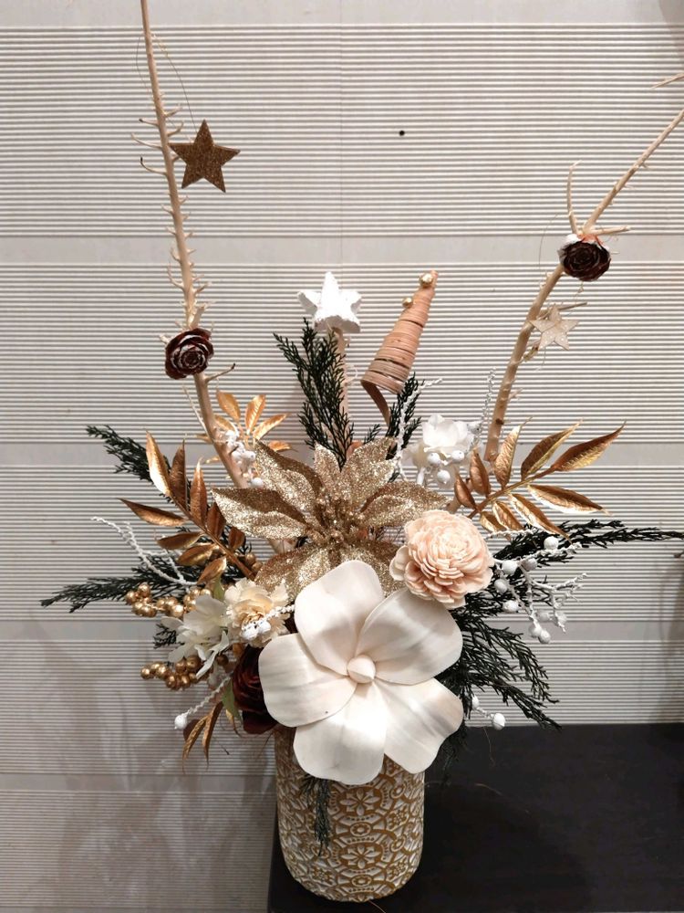 ①トナカイの角をイメージした、ナチュラルカラーのドライフラワーアレンジ🐐❇️🧡💛🤍❇️