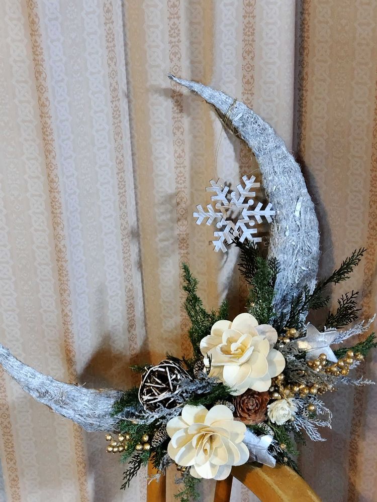 ②木の実やグリーンをあしらった三日月形のリース☘️🌼🏵️❄️☘️🌙