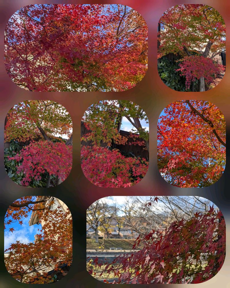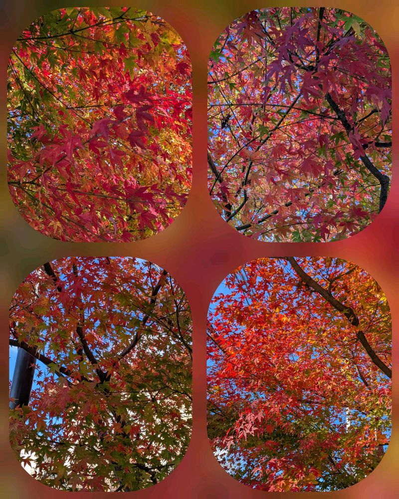 葉を落とした木々の間に間に本番を迎えた、華やかな🍁もみじを見つけます。