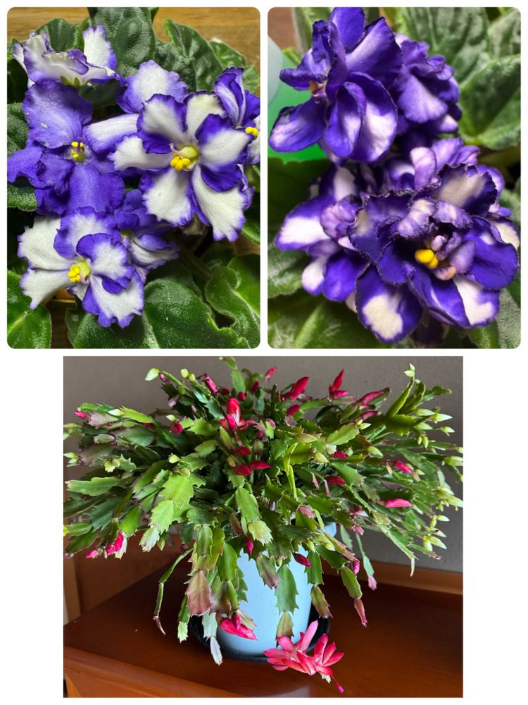 セントポーリアとシャコバサボテンご主人のお陰で綺麗に咲いて居ますね