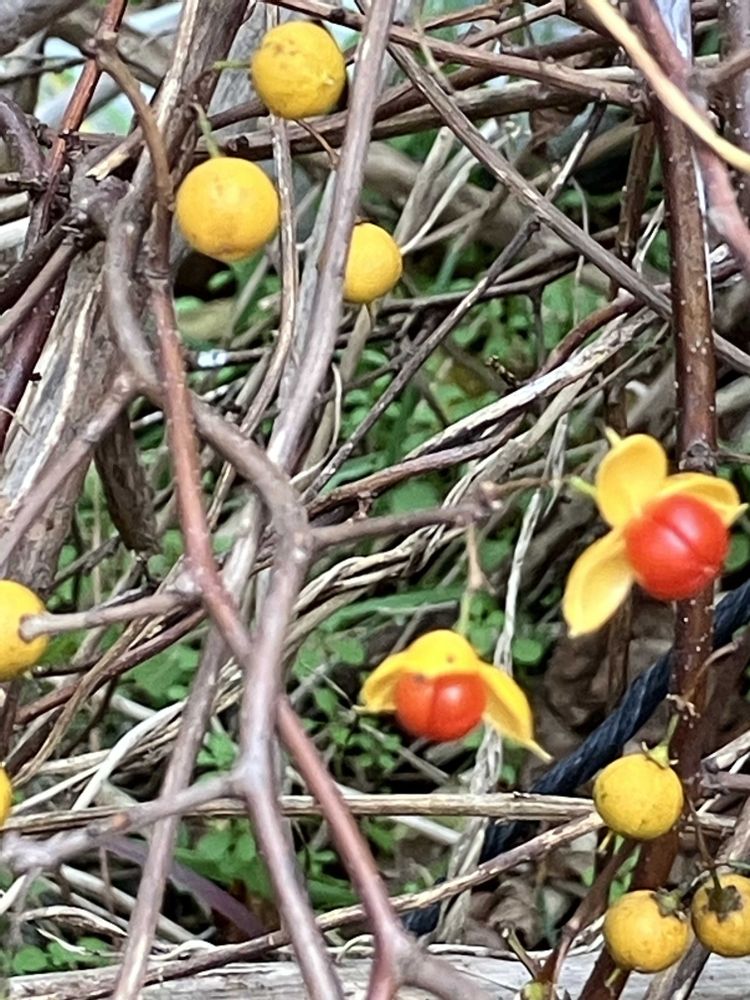 実ができて初めて気付いたツルウメモドキでした ホント綺麗だったよ🔴🟡