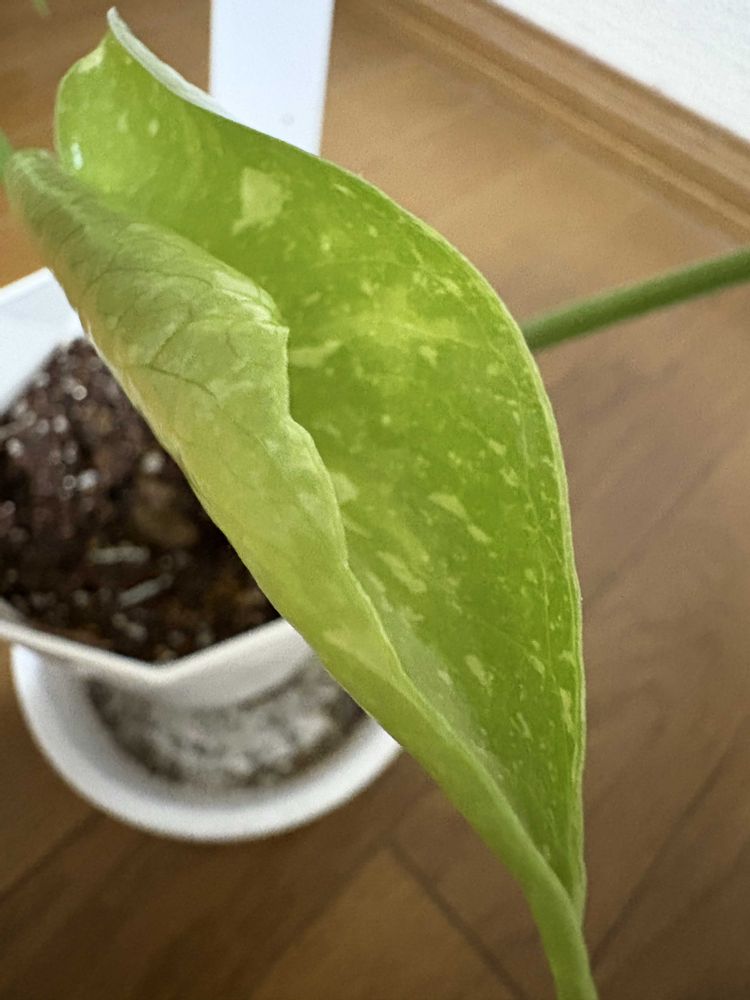 斑入りモンステラの新葉が