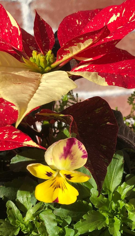 ①寄せ植え。先日お迎えしたポインセチアさんに。