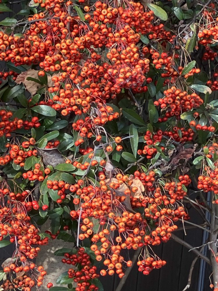 ピラカンサ,最初は真っ赤なだったのに、色褪せてオレンジ🧡になったのかなぁ😅