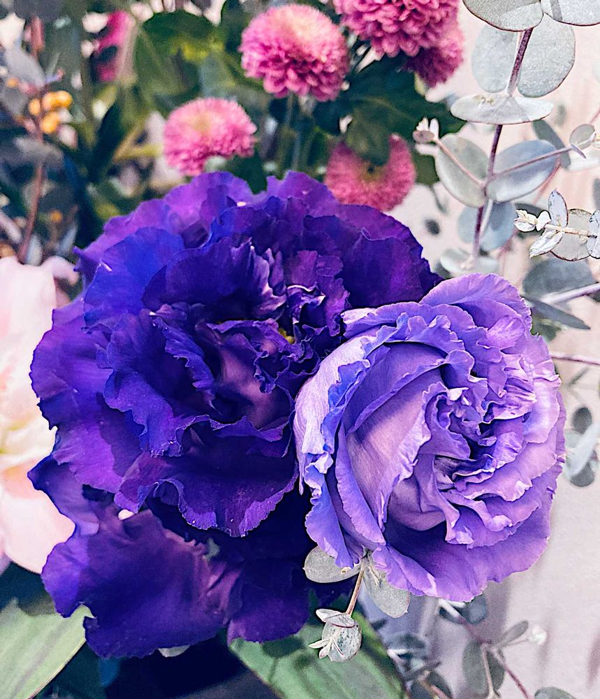紫の濃淡2種の八重の「トルコキキョウ」で、おはようございます✨💜💐💜✨