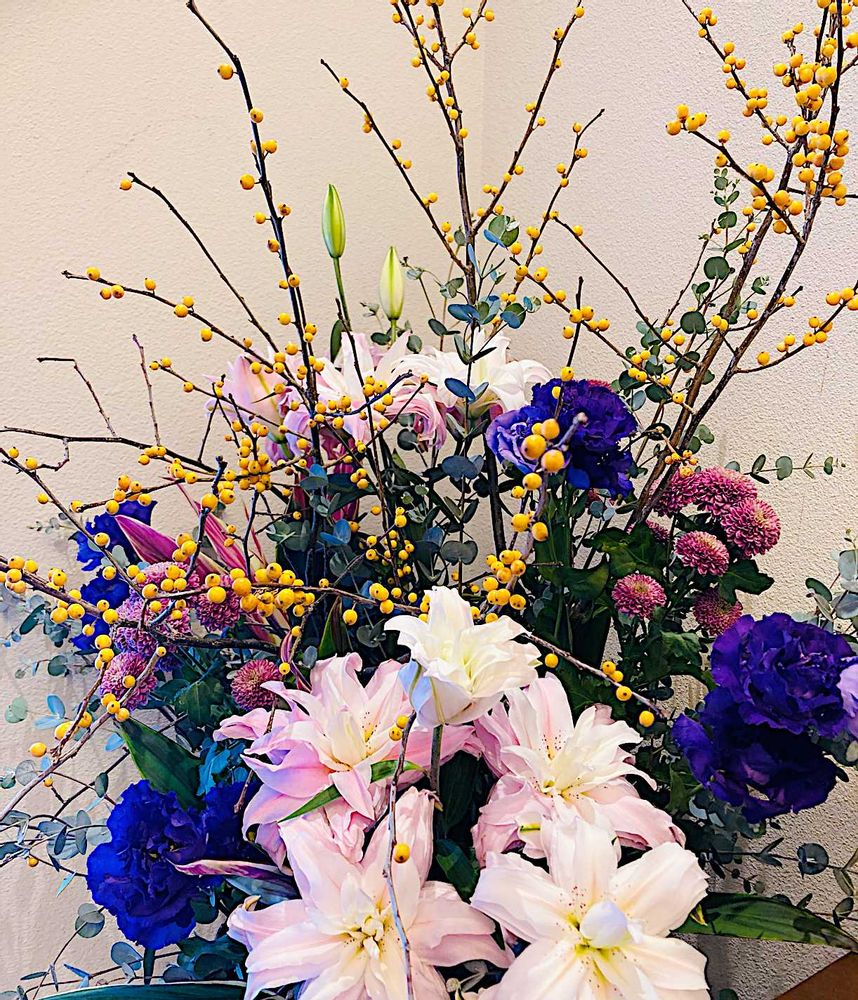 銀座・松栄堂さんへ今季も新しい御題銘香を求めに行った際に、エントランス空間に八重咲きの百合や季節の花々と共に飾ってありました☺️❣️
