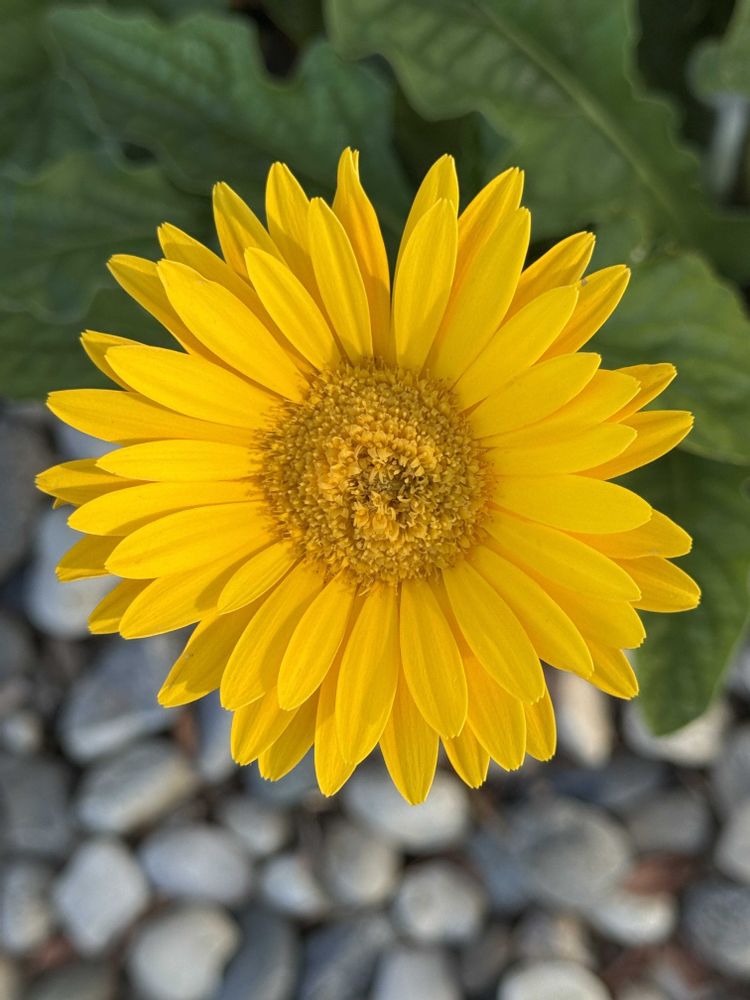 Gerbera jamesonii/Gerbera. Asteraceae. Asterales. Magnoliopsida. Tracheophyta Commonly called/Gerbera daisy. Barberton dsisy. *Named after the town of Barberton in South Africa. Native to/South Africa:Transvaal and Cape Province Symbolism/Cheerfulness. Purity. Loyality *Yellow Gerbera jamesonii/Represents. Cheerful. Celebration *Genus of about 40 species *Clump-forming, deep rooting perenial with inversely lance shaped, deeply lobed to pinnatifid leaves, 6-18in(15-45cm)long *This gerbera daisy yellow fetures large, 4-inch(10.16cm) bloom with bold yellow color and a dark brown center. *Gerbera jamesonii was discovered by Robert Jameson in South Africa in 1884. Photographed 12/2 10:18am 2025 Posted 12/5(Friday) 11:55am 2025