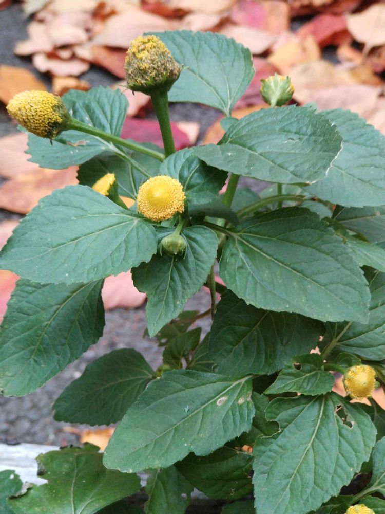 大好きなたまごボール。桜の木の下に。この花は種採り、種蒔きを続けています。昨日簡易温室に入れてあげた。上には桜の葉っぱを利用して葉っぱアートに使います。