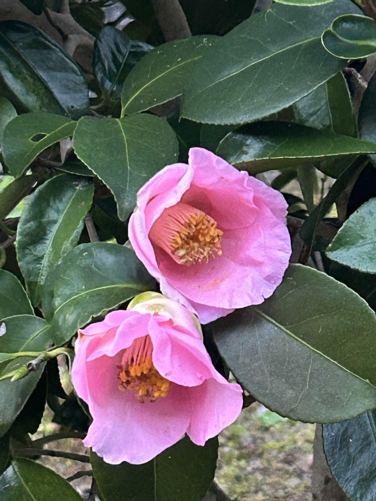 可愛いピンクの椿ようやくお顔を見せてくれましたね😂