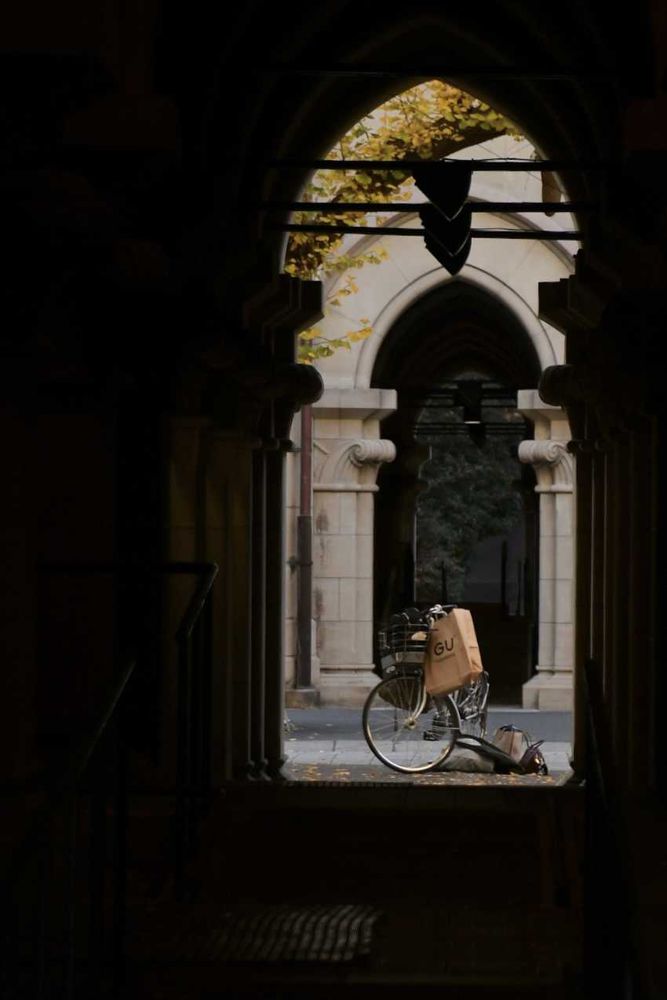 自転車と大きな紙袋とその色が素敵でした😀😄