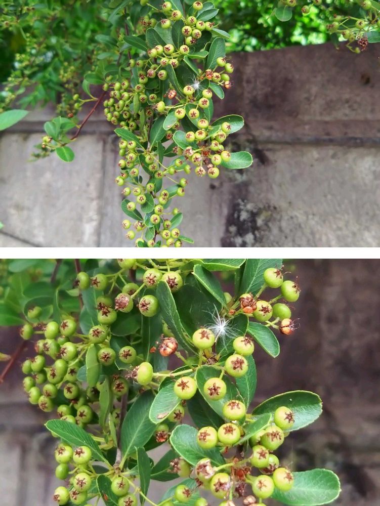 ピラカンサは、トキワサンザシの他にもタチバナモドキ、カザンデマリとかあるみたいで、AIでいろいろ出てくるけど、そこまで特定するのは自信なくて諦めました。