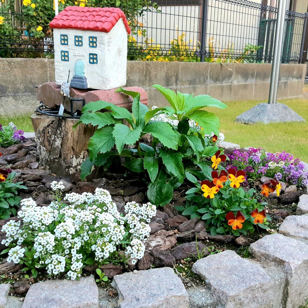 小さな花壇、宿根草のクリスマスローズの回りに一年草を秋に植え付けました🌿