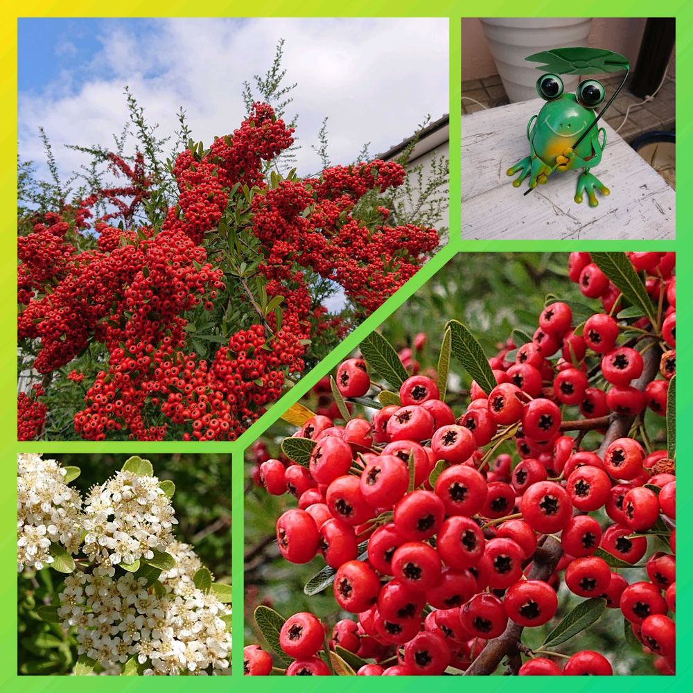 満開のビラカンサ、🐸カエルちゃん😀、可愛い~ですねー✨✨✨✨🎶