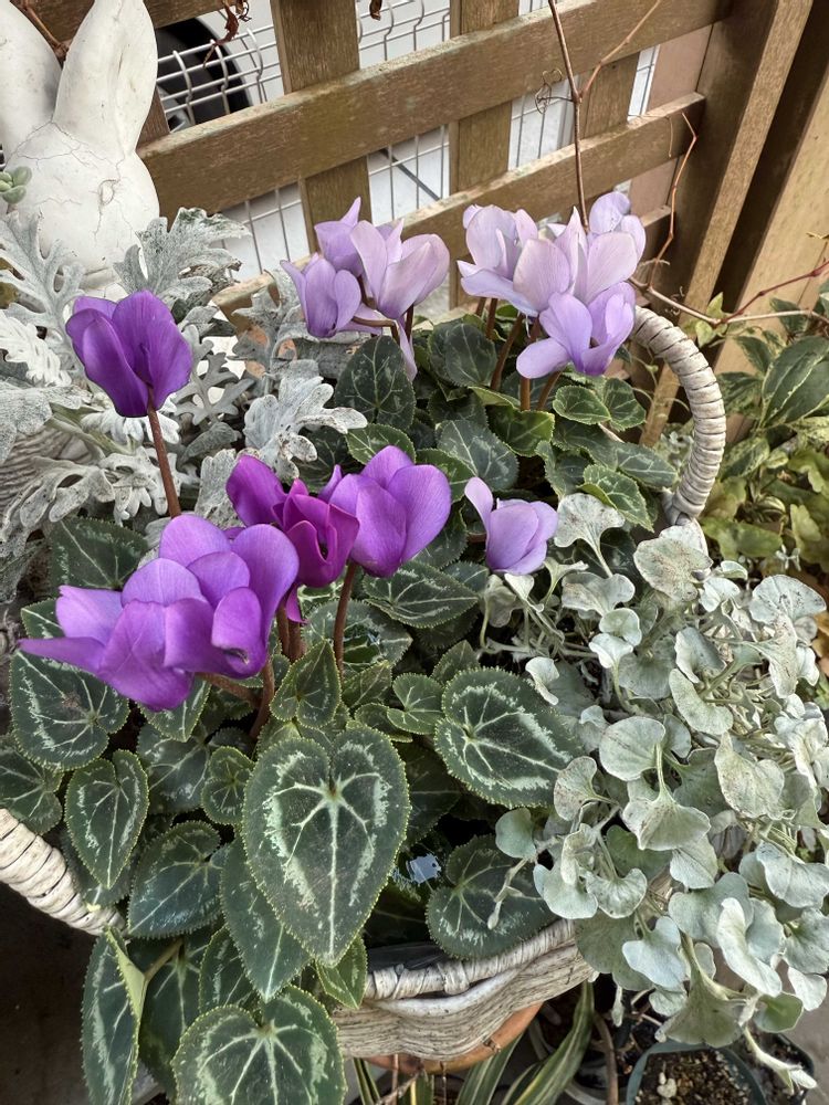 カゴに寄せ植えしたせいか、なかなか土が乾かず。水やりタイミングが難しい。
