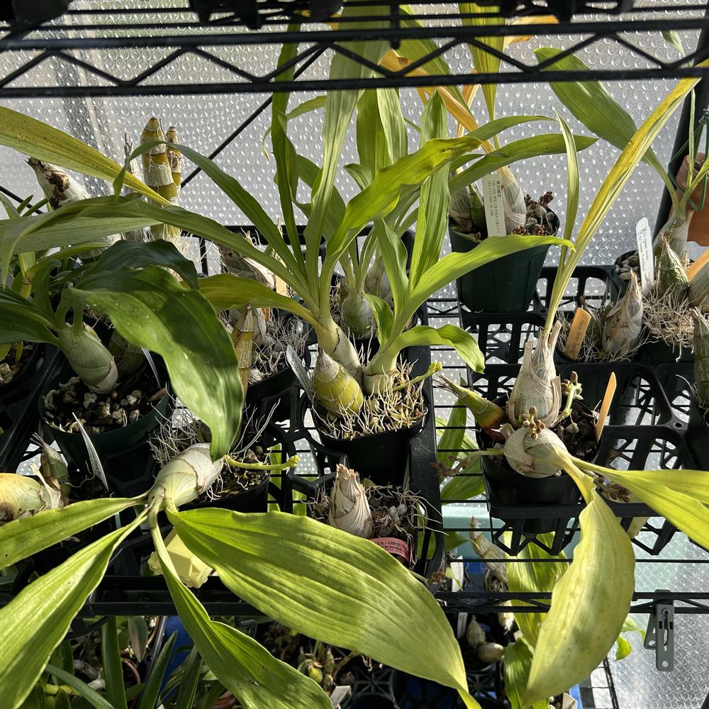 2枚目は花芽が付いているタケノコたちを集めた棚☺️ 夏の成果が出てるみたいで去年より確実に花芽の数と花芽をつけた種が多い! ただスペースがなく、新たに加わるSVO株たちのいどころが心配です😢🪴