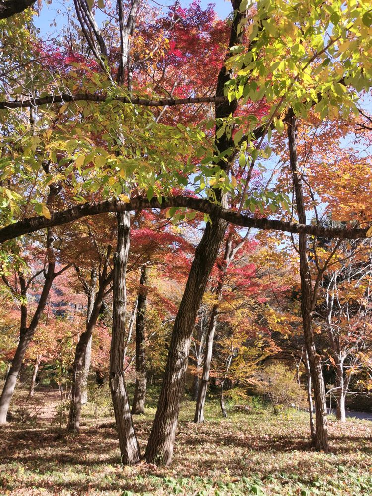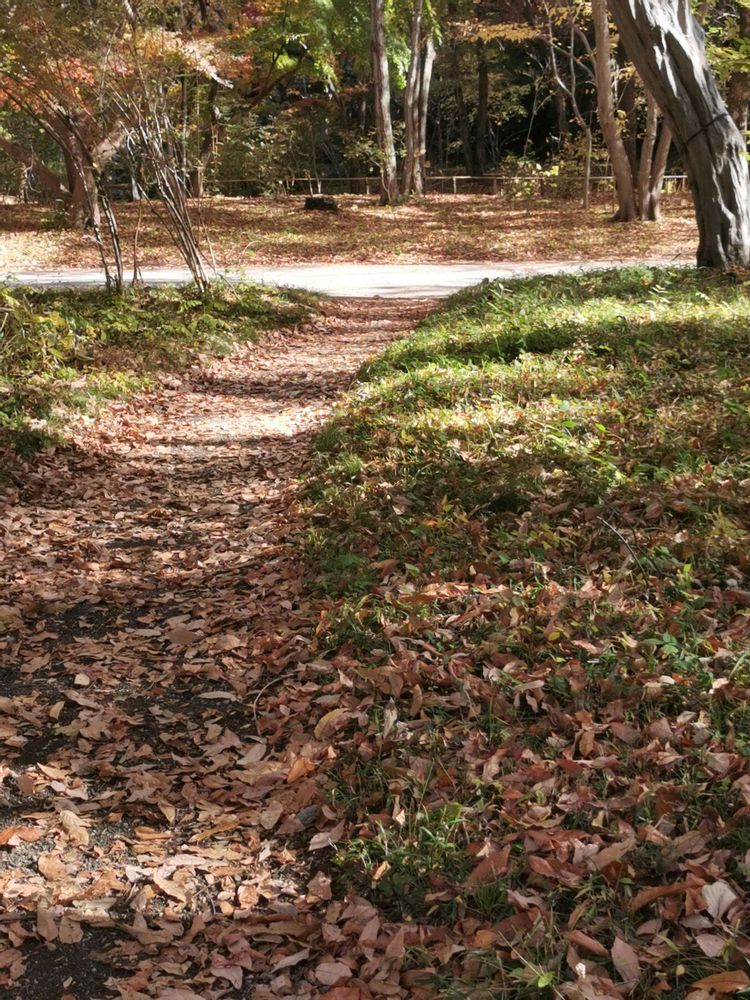 歩きやすい落ち葉の小道が気持ち良いです。夏の間は、気づかなかったモミジが紅葉してこんなにあったんだぁと思いました。🍁🍂🎶
