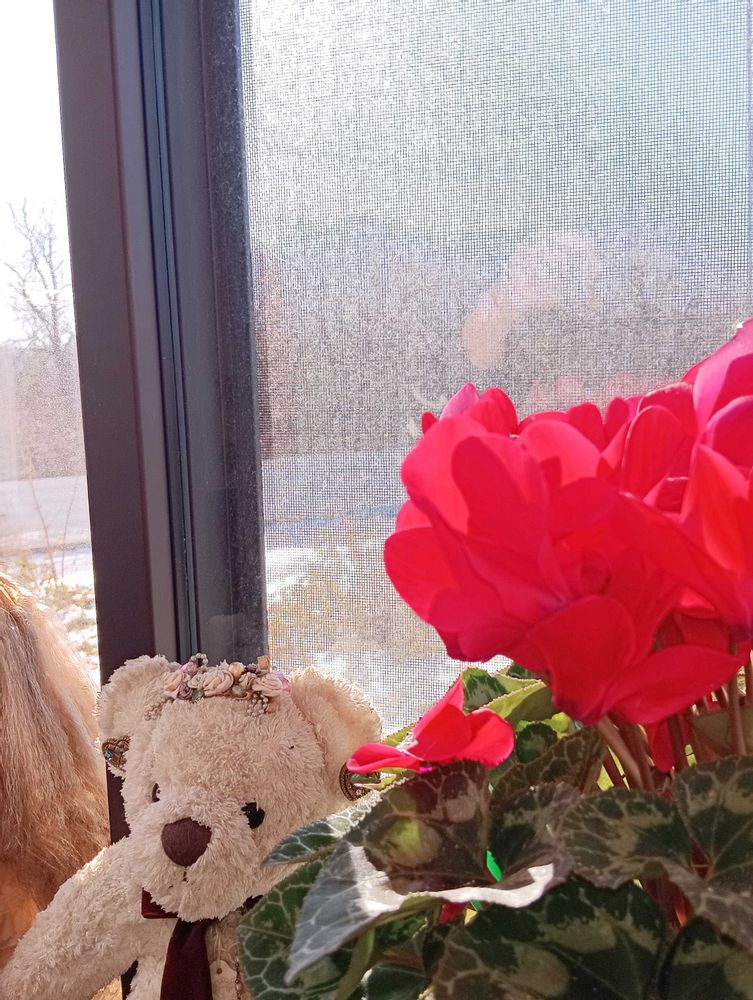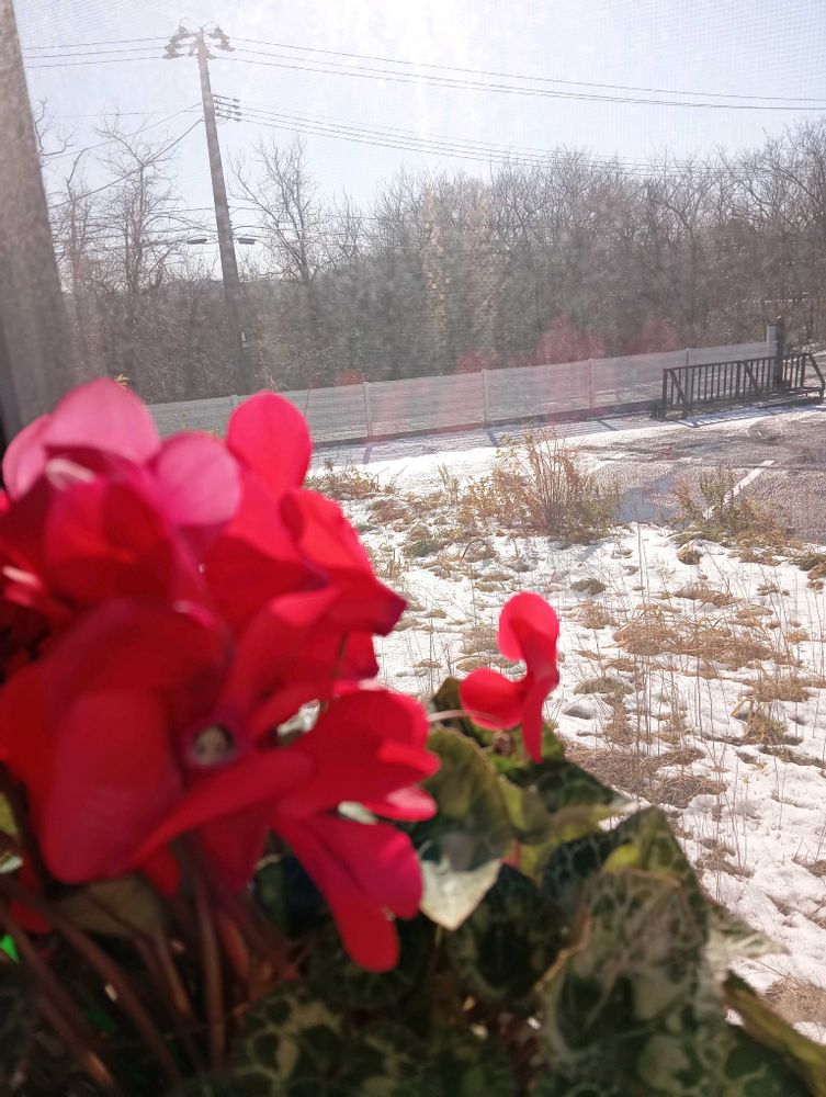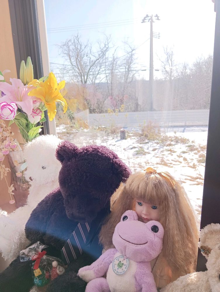 昨日暴れた雪が積もった😝今朝は、晴れて良い天気😎窓はべは陽射しが😎🏷️毎月6日はカエルの日