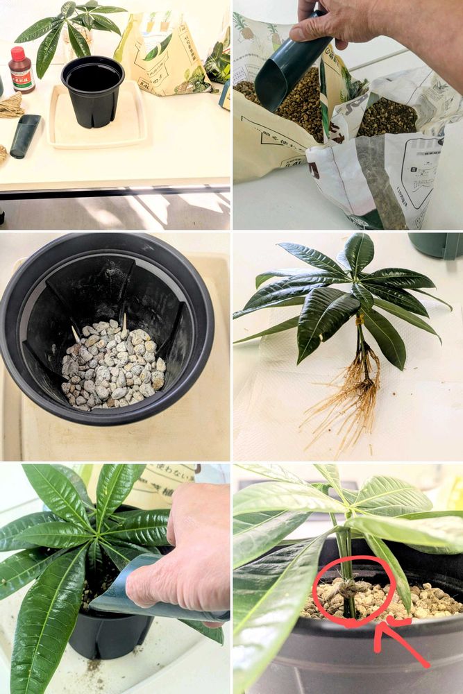 水挿ししてたパキラの枝から出てた根が10cmくらいまで伸びてたので、植木鉢に植え替えしました。
